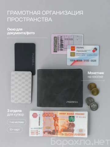 Кошелек мужской Pursell выполнен из высококачественной экокожи.